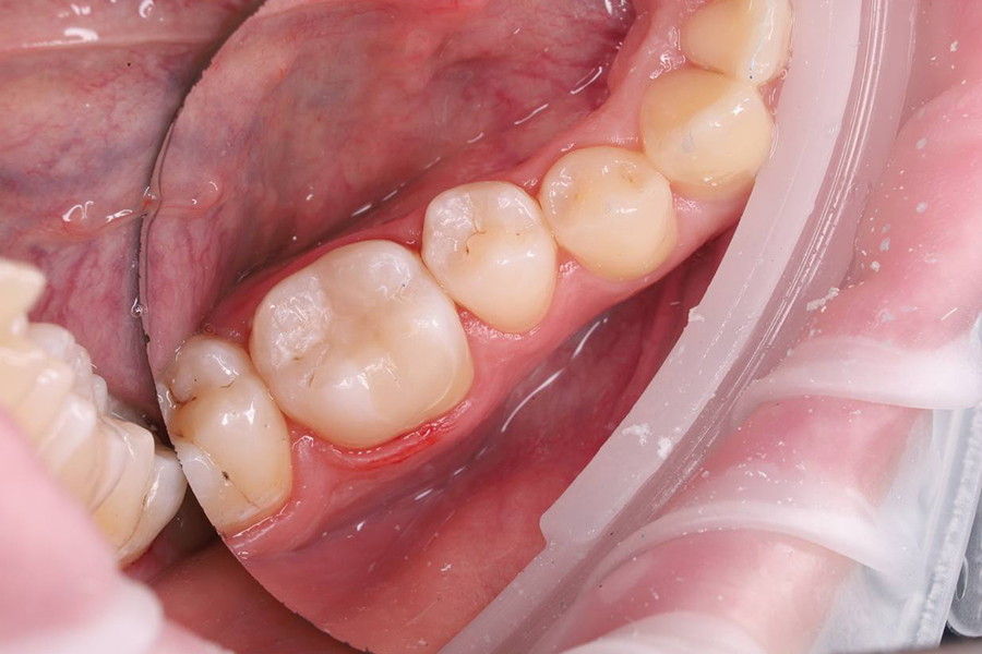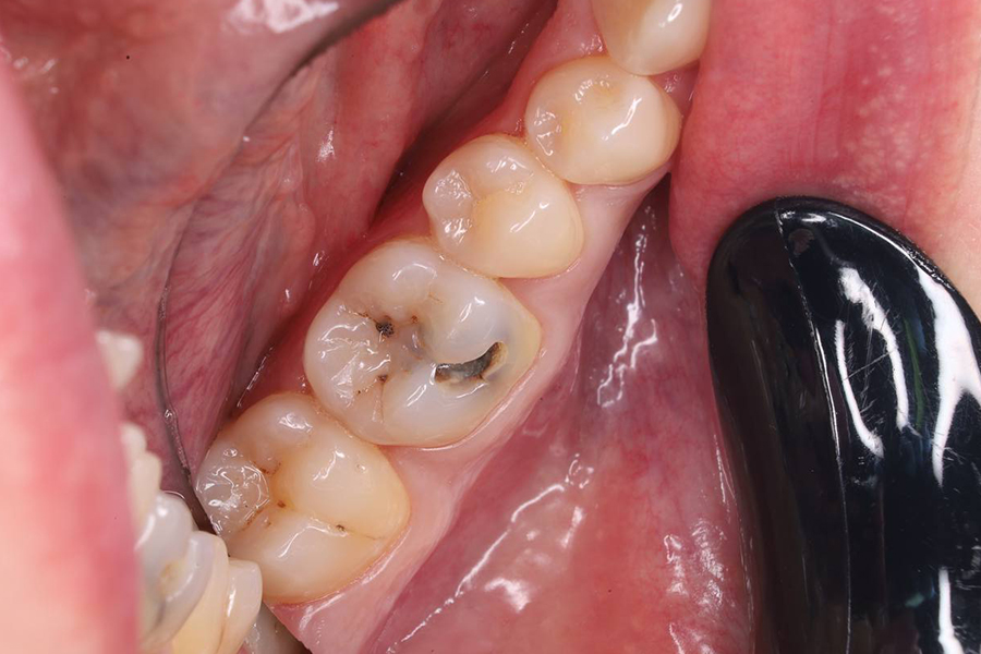Лечение кариеса с дальнейшим восстановлением коронки зуба с помощью светоотверждаемой пломбы :