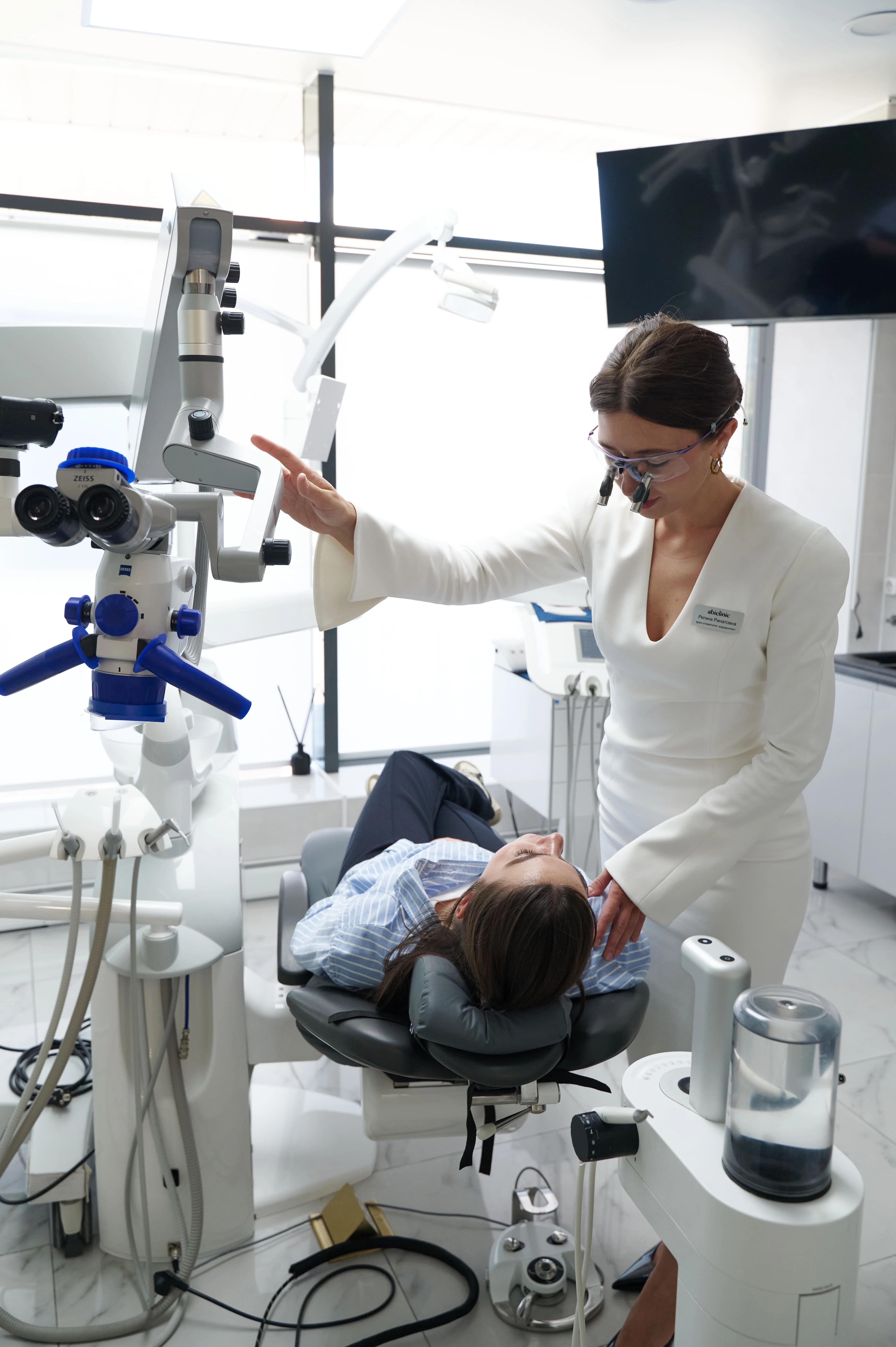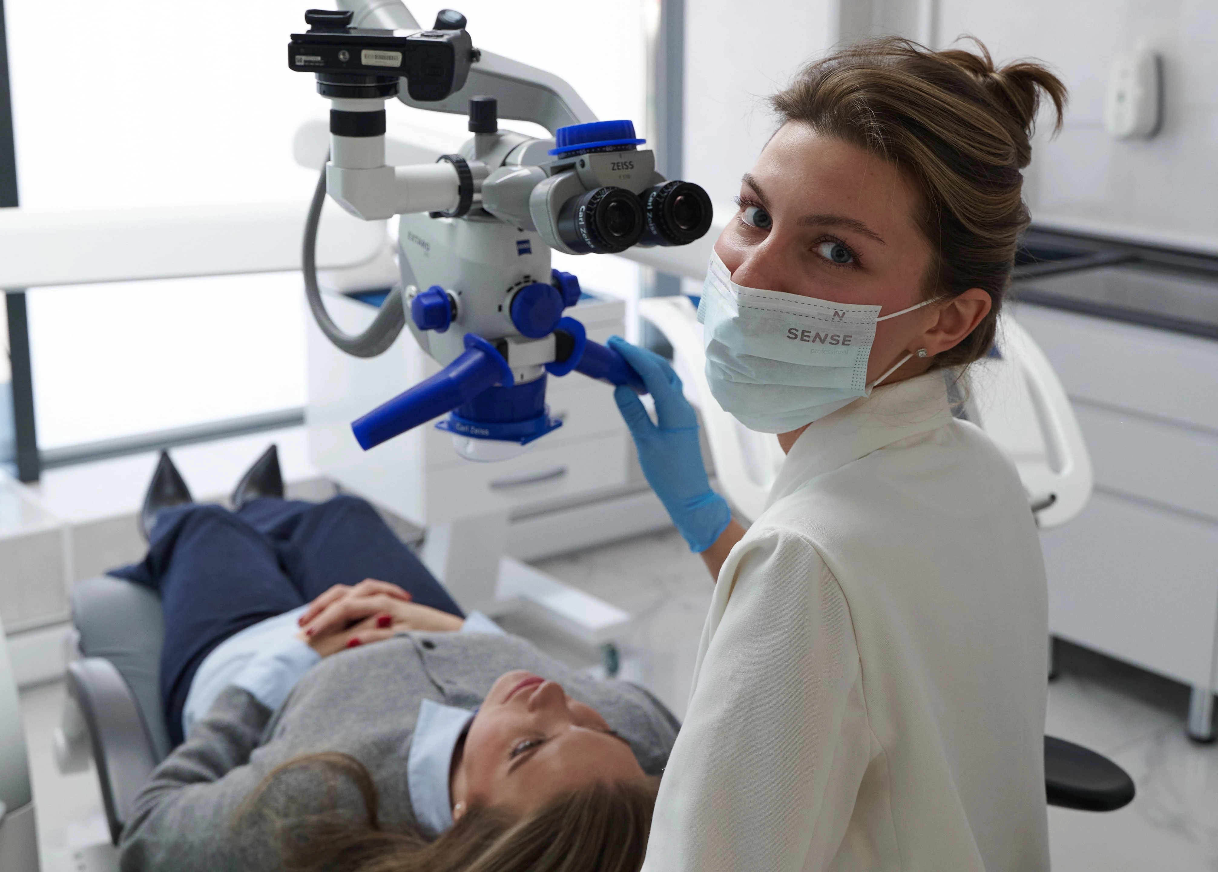 - Проводит препарирование кариозной полости, удаляя пораженные ткани. В abiclinic обработка зуба выполняется под микроскопом, что позволяет провести минимально инвазивное лечение.